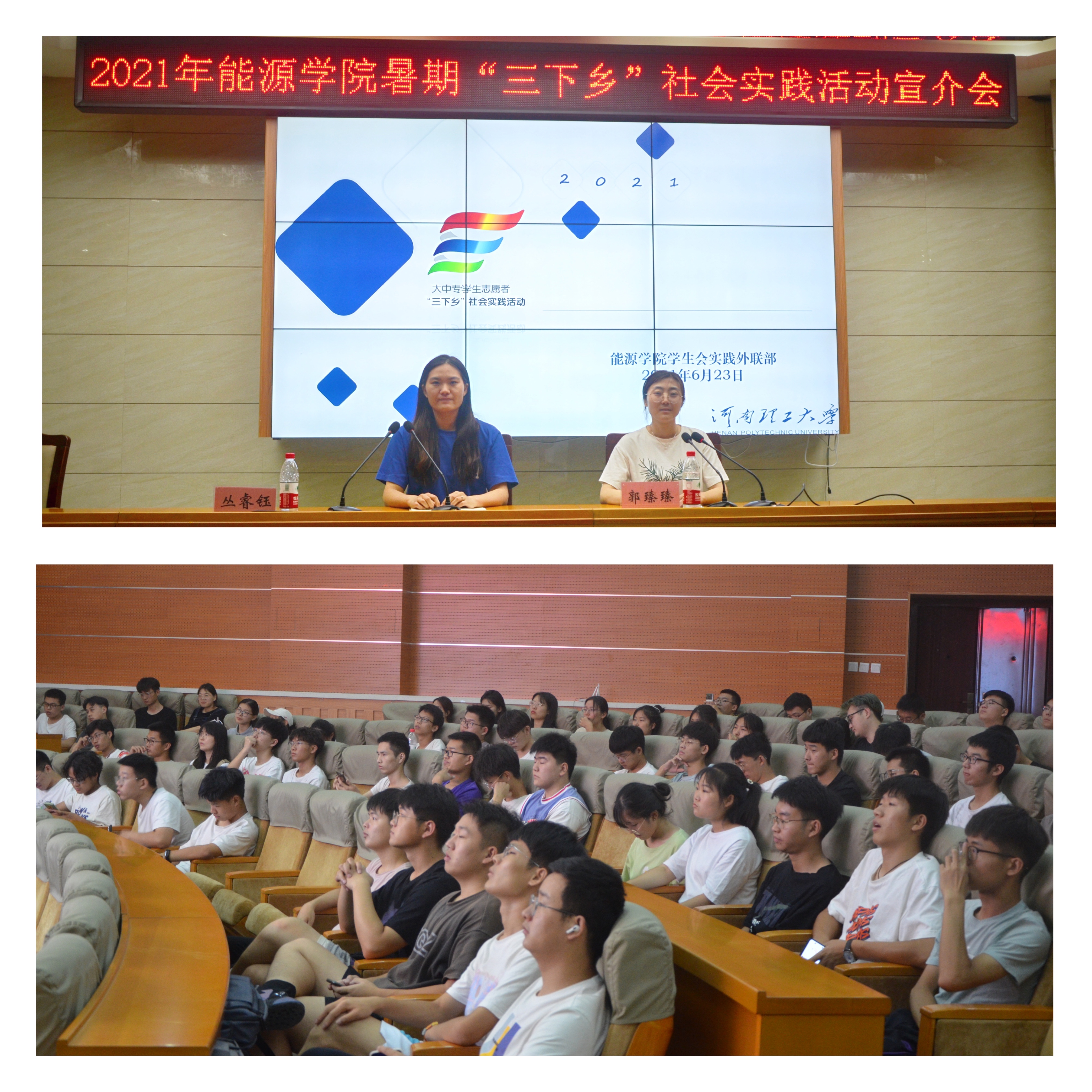 为更好引导学院学生积极参与到暑期社会实践活动中,6月23日,学院在院楼104举行2021年“三下乡”暑期社会实践活动宣介会。院学工办主任郭臻臻、19级专职辅导员丛睿钰、院学生会及各学生班级负责人参加了大会。