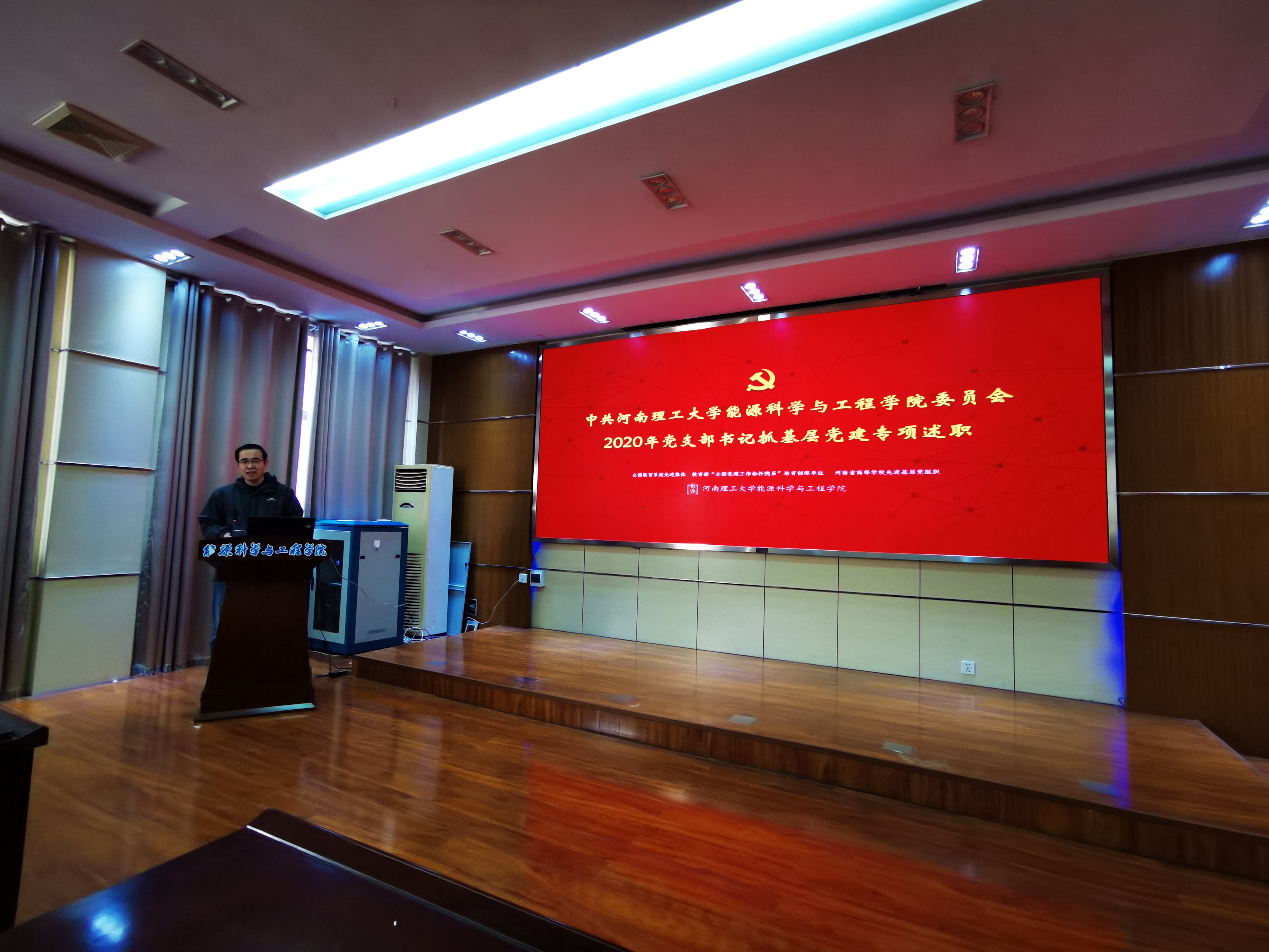 为认真贯彻落实习近平新时代中国特色社会主义思想和党的十九大精神,落实全面从严治党要求,进一步促进基层组织建设全面进步全面过硬,按照《河南理工大学二级党组织书记抓党建工作年度述职评议办法》要求,12月15日下午,能源学院召开2020年度基层党支部书记抓党建述职评议暨工作经验交流会。学院党委委员、各支部支委会成员及党员代表参加了本次会议。