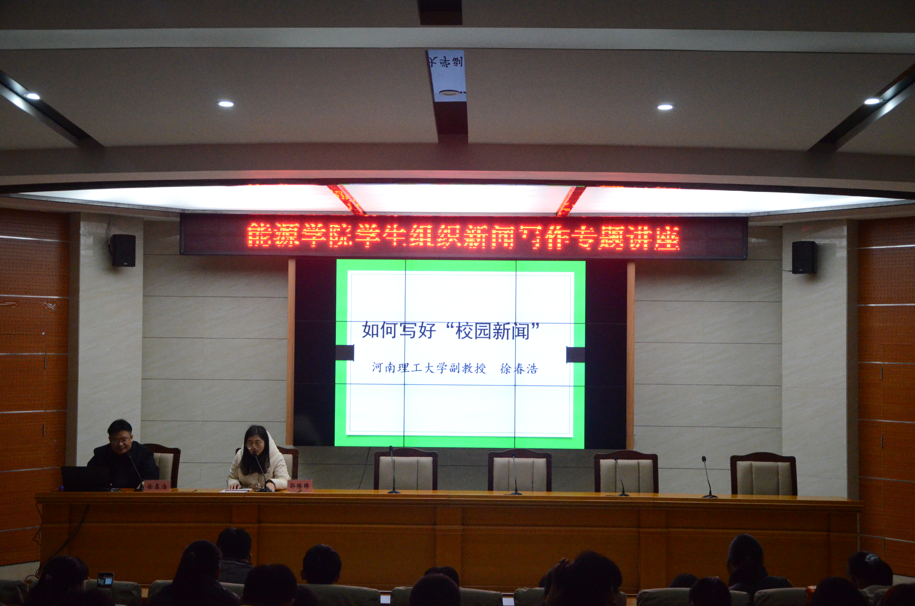为加强学院宣传工作队伍建设,提高同学们的新闻写作技能,12月11日上午,学院邀请校党委宣传部新闻宣传科科长徐春浩在院楼104学术报告厅作题为《如何写好“校园新闻”》专题讲座。我院全体学生组织成员参加了此次讲座,讲座由院学工办主任郭臻臻主持。