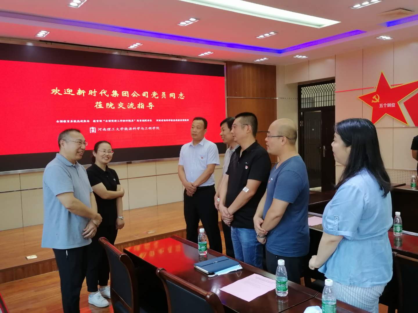 8月26日,河南新时代交通发展集团有限公司20多名党员干部莅临学校,就基层党支部建设标准化规范化专题进行交流。学校在能源学院201会议室召开座谈会,组织部、能源学院党委负责人及工作人员参加会议。会议由该院党委副书记阎俊豪主持。