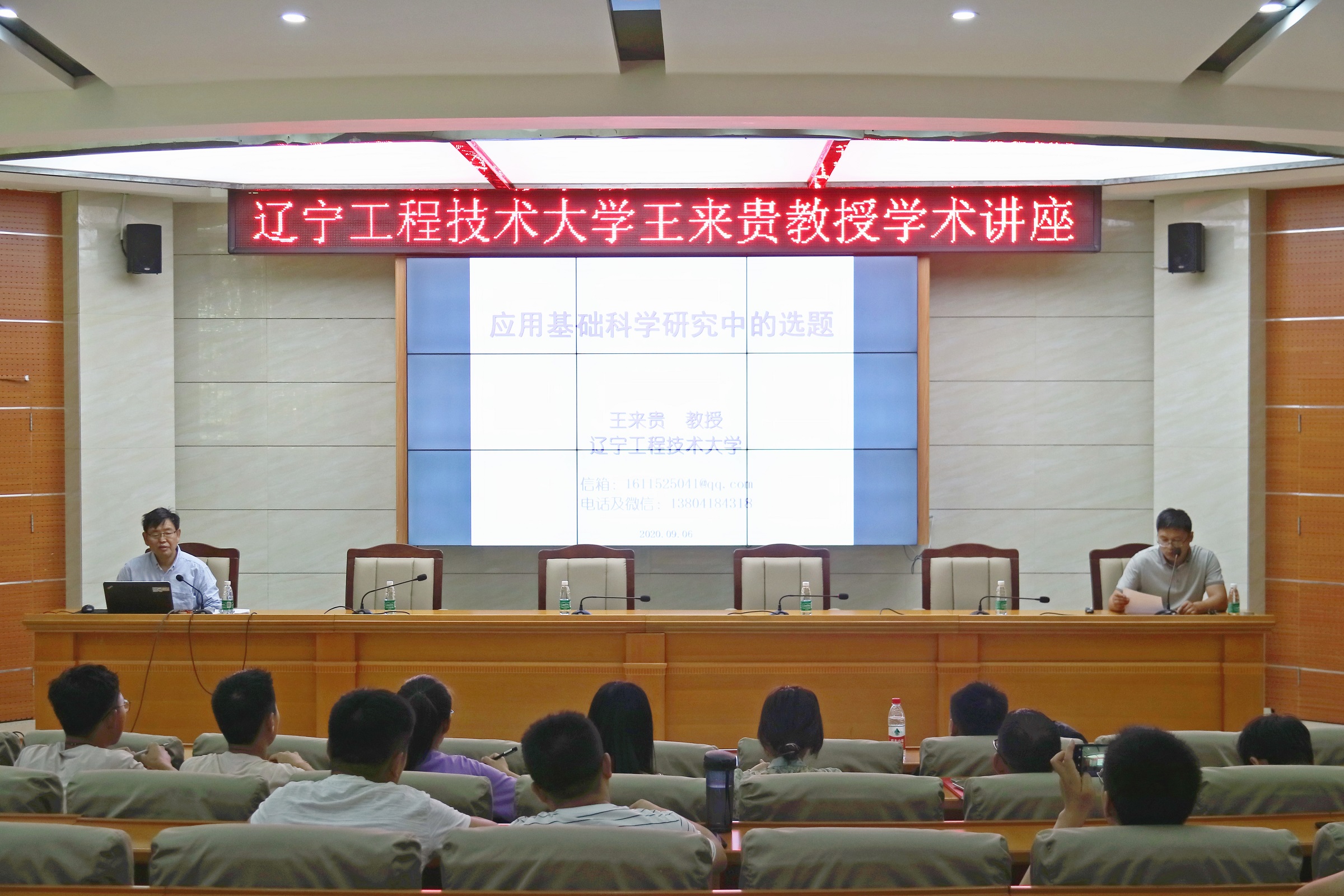 2020年9月6日下午,应能源学院邀请,辽宁工程技术大学王来贵教授在能源学院一楼104学术报告厅作了题为《应用基础科学中的选题》的报告。能源学院实验室中心教师和部分研究生聆听了本次讲座,报告由学院副院长刘少伟主持。