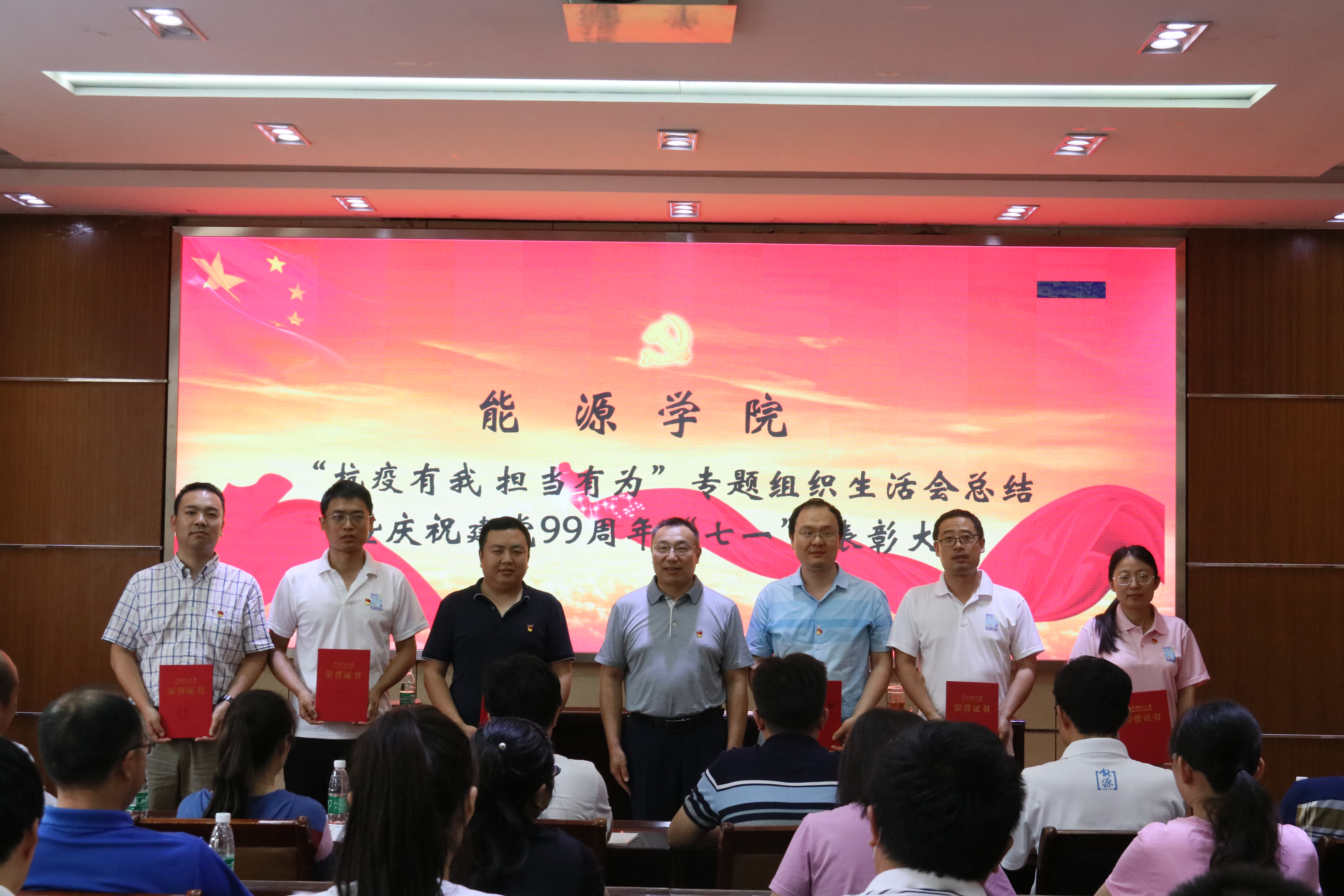 为庆祝建党99周年,能源学院党委7月1日下午在学院201党员活动室召开“抗疫有我 担当有为”专题组织生活会总结暨 “七一”表彰大会,学院党委委员、各教工支部委员,优秀共产党员获得者、教工党员代表参加会议,会议由学院党委副书记阎俊豪主持。