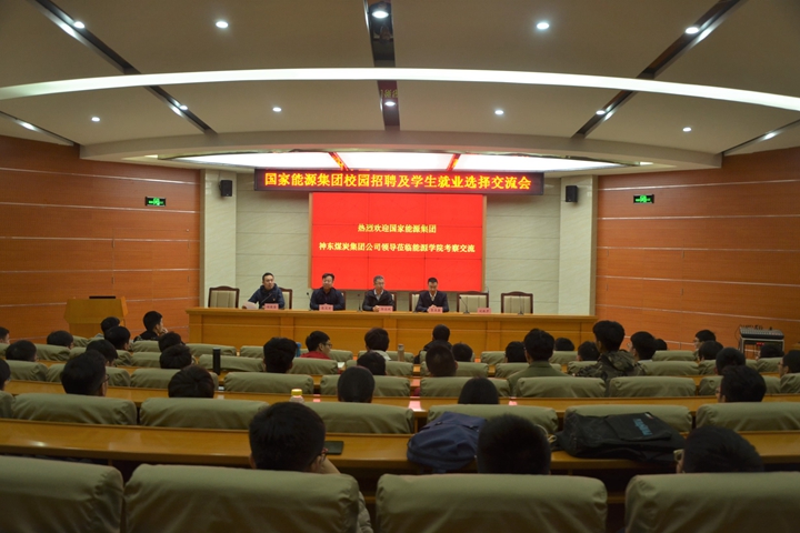 11月19日下午,国家能源集团校园招聘及学生就业选择交流会在能源学院104学术报告厅举行,国家能源集团神东煤炭集团领导高文才、郭永斌、贾连鑫,能源学院党委副书记阎俊豪以及相关专业各年级学生百余人参加了此次交流会。交流会由阎俊豪主持。