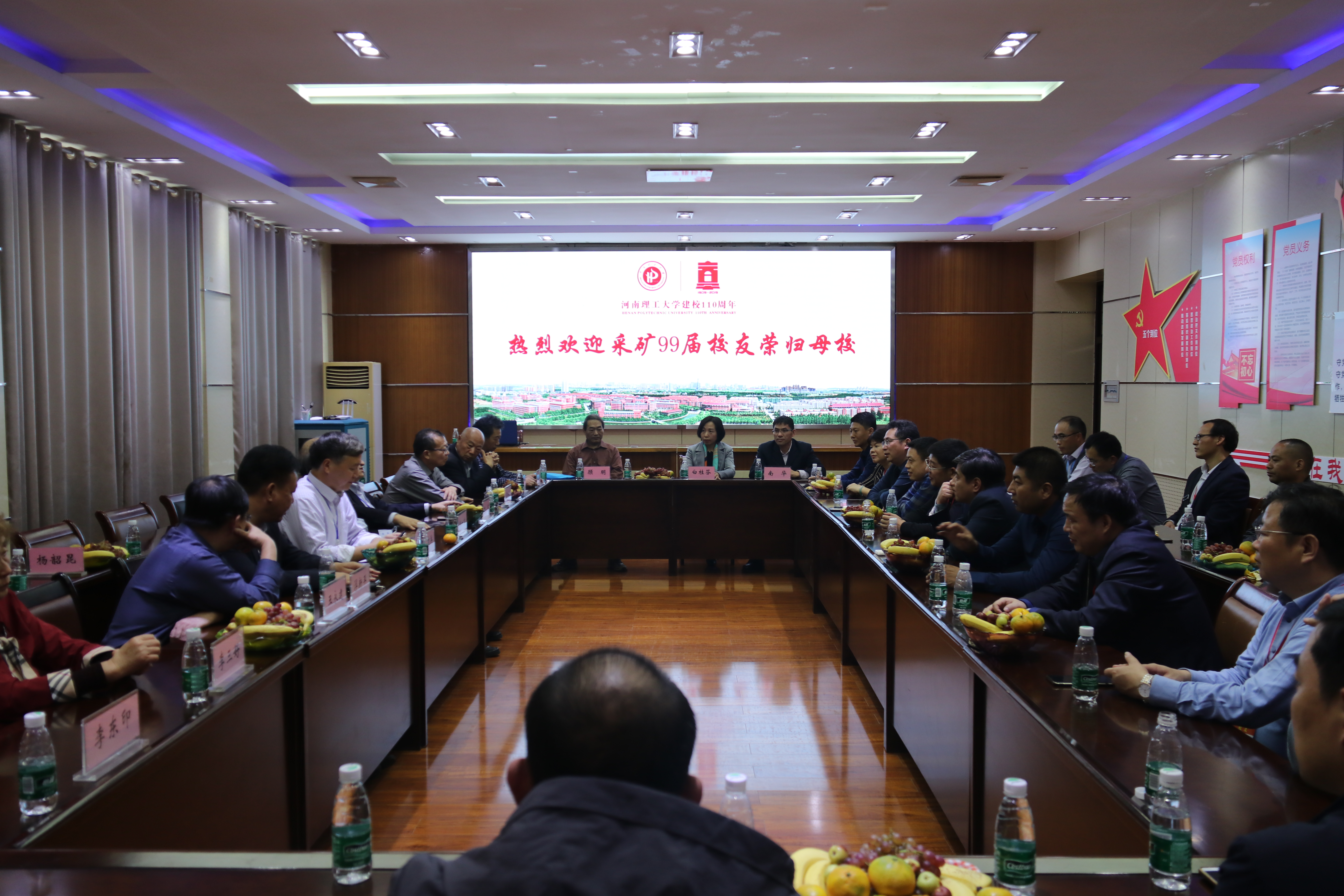 青山在,人未老,同学情正浓;岁月增,水长流,情怀依旧深。10月19日下午,能源学院95级校友座谈会在能源学院201会议室举行,学校原副校长周英、原采矿系主任柴一言、能源学院院长郭文兵,副院长李东印,以及95级校友参加了此次座谈会。会议由郭文兵主持。