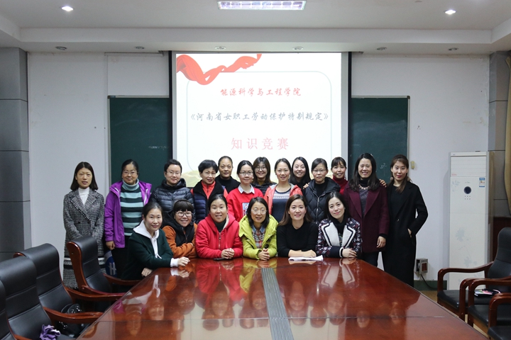 为进一步加强学院女教职工对《河南省女职工劳动保护特别规定》的认知和了解,我院结合自身实际,于11月26日下午在能源学院213会议室举行了《特别规定》知识竞赛。学院党委书记王婕和全体女教职工参加了本次竞赛。竞赛由女工委员宋红娜主持。