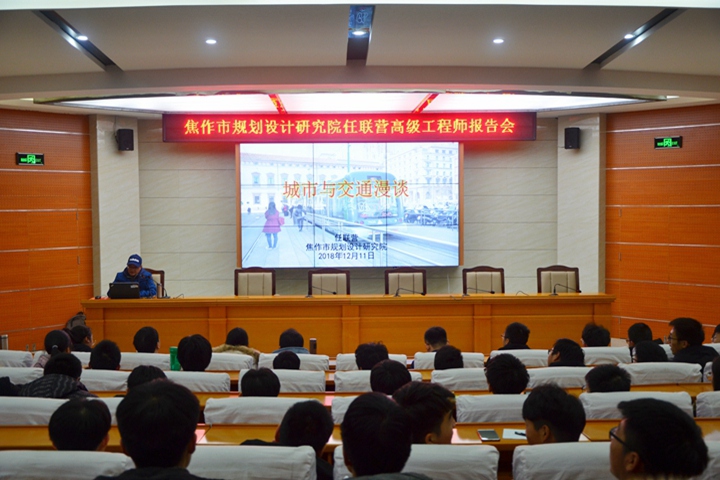 12月11日下午,应学院之邀,焦作市规划设计研究院高级工程师任联营于学院104学术报告厅作题为《城市与交通漫谈》的讲座。交通工程等相关专业师生参加了报告会。