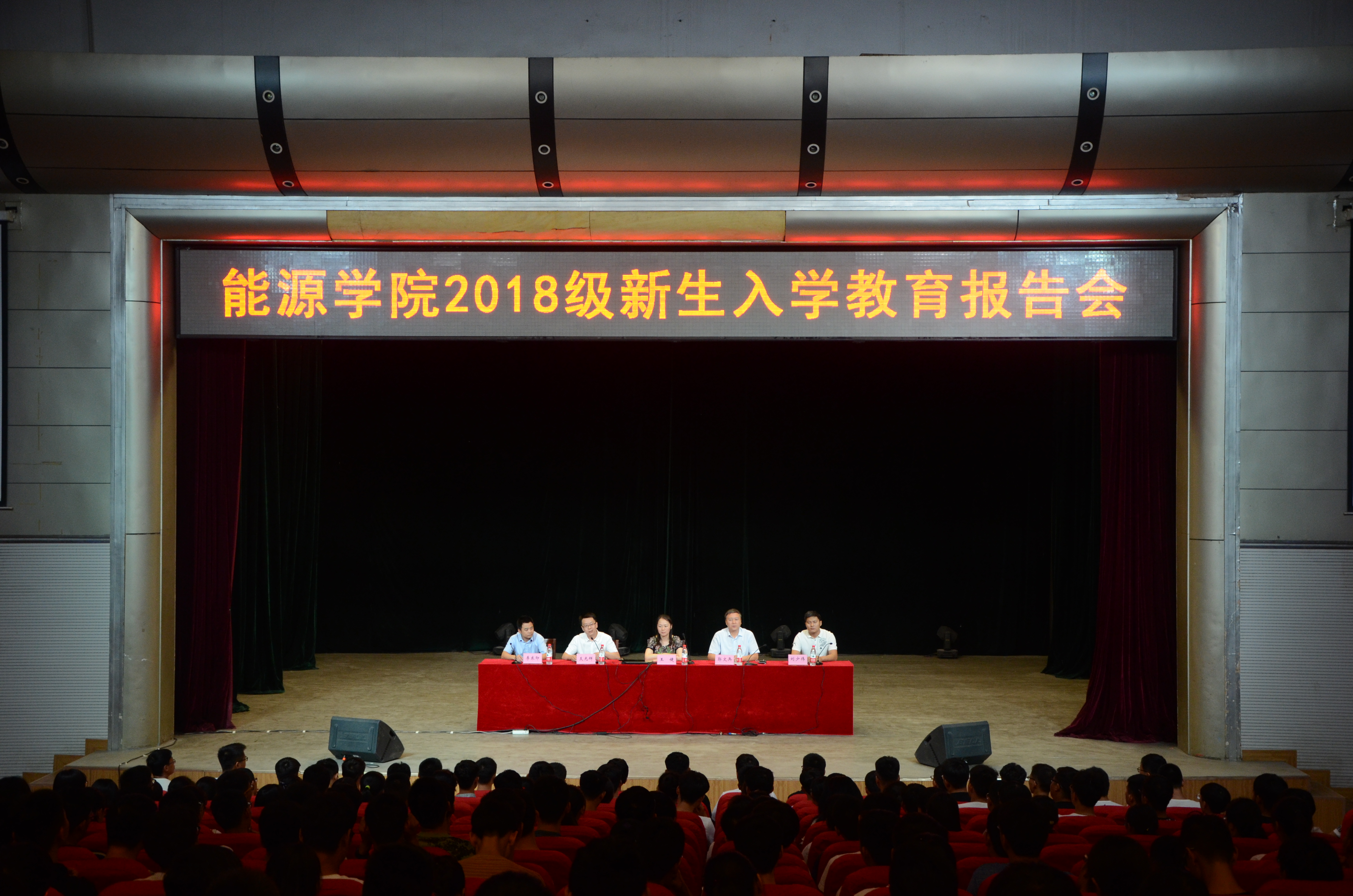 9月7日晚,能源学院在小礼堂召开2018级新生入学教育报告会,学院党委书记王婕,院长郭文兵,党委副书记支光辉,副院长李东印、副院长刘少伟,新生辅导员及全体新生参加会议。会议由支光辉主持,郭文兵做专题报告。