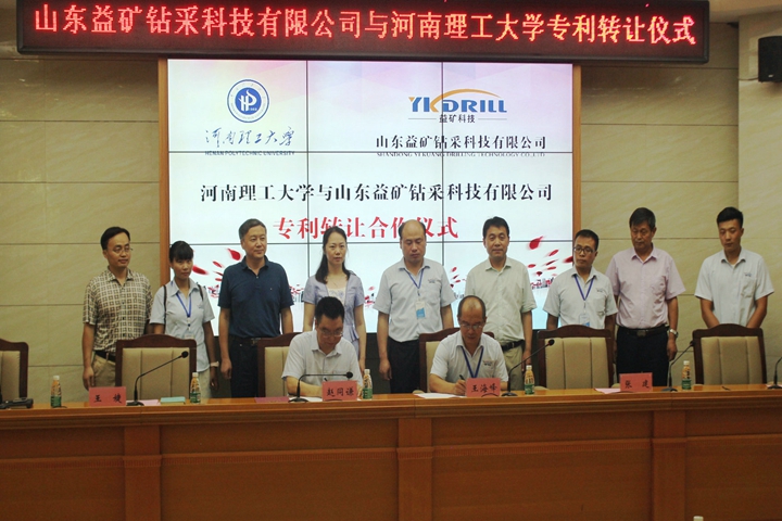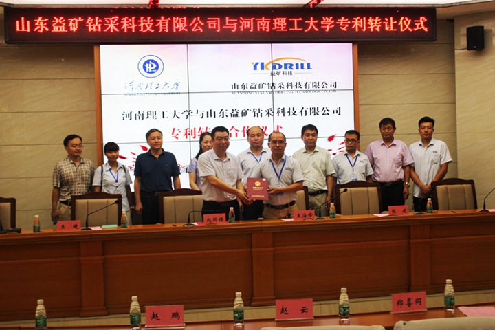 7月20日上午,河南理工大学与山东益矿钻采科技有限公司(以下简称“益矿科技”)专利转让仪式在能源楼104学术报告厅举行,副校长赵同谦、益矿科技董事长王海峰、学院党委书记王婕、院长郭文兵、专利发明人孙玉宁及其团队成员、益矿科技技术部长王刚、销售代表郑喜同、张建等出席转让仪式。仪式由学院院长郭文兵主持。 本次仪式上,双方在各自意愿的基础上,经过充分协商,就河南理工大学将其“异型多棱刻槽钻杆”(专利号ZL 200910064973.0)和“非对称异型截面钻杆”(专利号ZL 200910064223.3)2项专利权转让给山东益矿钻采科技有限公司事宜达成专利转让合作协议,河南理工大学副校长赵同谦、学院院长郭文兵、第1发明人孙玉宁教授和益矿科技董事长王海峰等分别在仪式上进行讲话,表达对此次专利转让各项事宜的支持和对校企产学研战略合作的肯定。 仪式结束后,学院孙玉宁教授团队同益矿科技王海峰董事长一行在本体直槽式刻槽钻杆系列设计方案、钻杆探伤设备、双向连接长卡豆钻杆、负压放水器、渣水分离放水器等方面进行了深入讨论和交流,并对今后双方进一步合作达成初步共识。 新闻链接: 益矿科技官网报道:校企联谊谱新篇 合作双赢谋发展 |