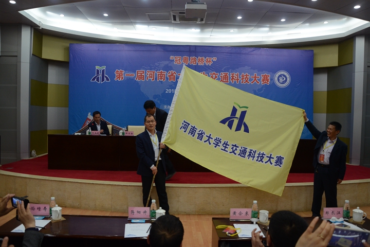 比赛阶段结束后,14日下午,大赛闭幕式在学校力行楼圆形会议室举行,闭幕式由大赛秘书长朱成明主持。教育部高等学校交通工程教学指导分委员会副主任、同济大学杨晓光教授对本届大赛进行了总结并宣读了大赛一、二、三等奖的获奖名单。本次大赛分别共有8件作品获得一等奖、20件作品获得二等奖、28件作品获得三等奖、14件作品获得优秀奖。最后,大会举行了大赛会旗交接仪式,下届河南省大学生交通科技大赛由河南城建学院承办。