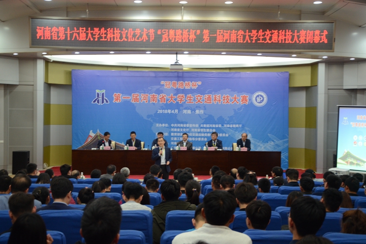 4月14日上午,由河南省委宣传部、共青团河南省委、河南省教育厅、河南省文化厅、河南省学联主办,教育部高等学校交通工程教学指导分委员会指导,我校承办的河南省第十六届大学生科技文化艺术节暨“冠粤路桥杯”第一届河南省大学生交通科技大赛开幕式在学校力行楼学术报告厅举行。教育部高等学校交通工程教学指导分委员会副主任邵春福、杨晓光,秘书长关宏志教授等多位省内外专家出席了开幕式,我校党委副书记安士伟教授及教务处、校团委、创新创业学院、能源学院的相关负责同志出席了仪式。开幕式由能源学院党委书记王婕主持。
