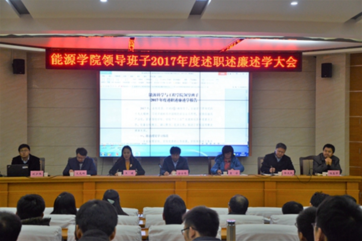 院长郭文兵教授代表学院领导班子做了班子述职述廉述学报告,从政治理论学习情况、履行岗位职责情况、党风廉政建设情况、存在问题和今后打算四方面对2017年学院领导班子的总体情况进行了系统汇报,总结了一年来能源学院工作主要做法、典型经验、所获成绩,以及努力方向和工作打算。郭院长还做了《2017年度院长抓发展述职报告》,介绍了年度任务的完成情况,从本科教学与专业建设、研究生教育与学位点建设、科研学科与平台建设、师资队伍建设与高层次人才培育、国际交流与对外宣传五个方面全面的报告了我院2017年学院发展的成果,并以问题为导向,提出2018年要切实提高教学质量和人才培养质量、持续实施高层次人才培养计划、加强学科平台和科研团队建设、提升学院办学国际化水平。