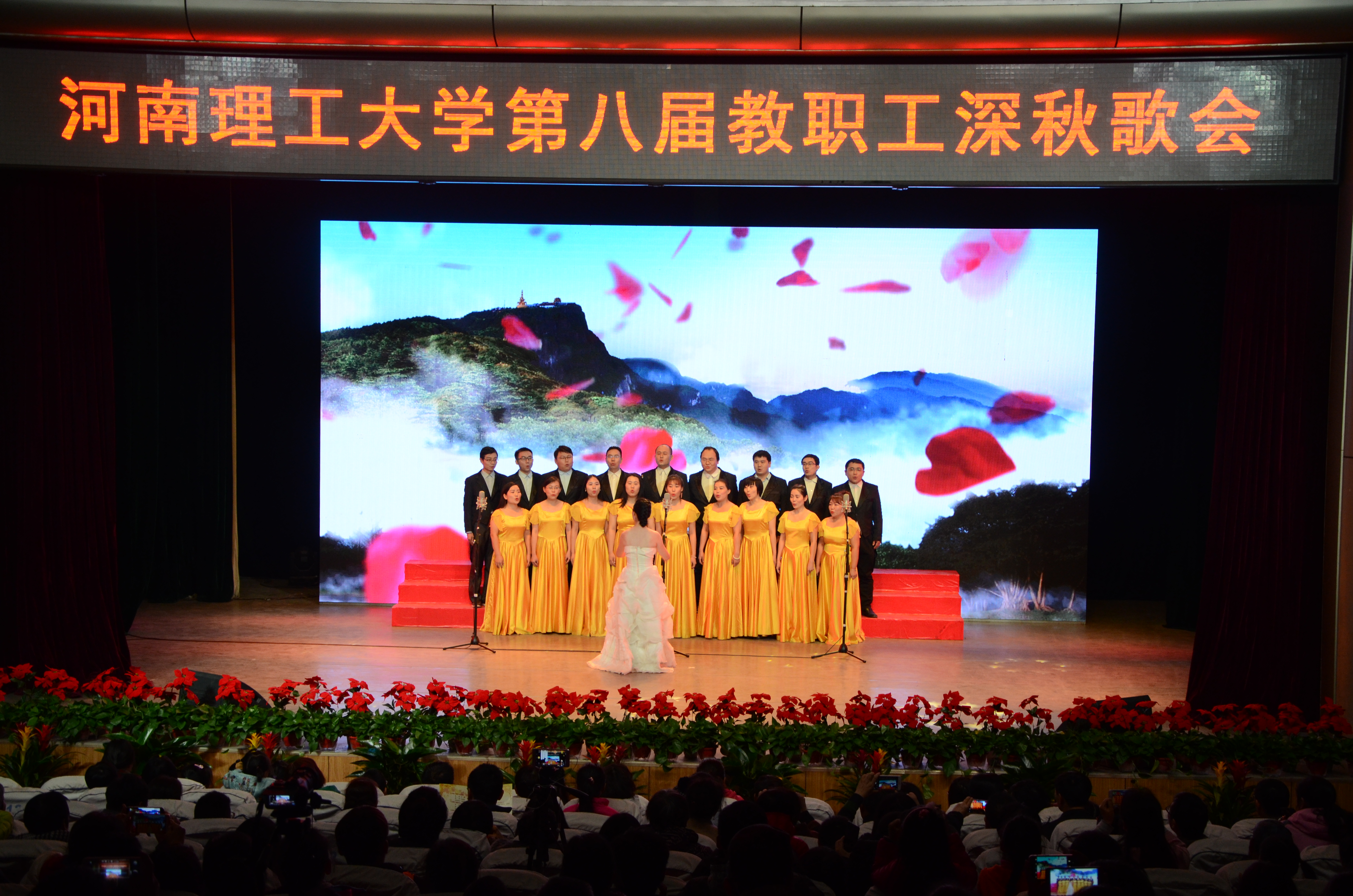 为丰富广大教职工的校园生活,提高广大教职工文化素质修养。11月24日晚,由校工会和校团委联合举办的第八届教职工深秋歌会在小礼堂隆重举行。能源学院教职工合唱团在陈春玲的优秀指挥下,倾情演唱了《众人划桨开大船》和《爱我中华》两首歌曲。