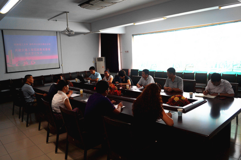 刘为杰代表焦作市公共交通总公司对李东印一行表示热烈欢迎,并简要介绍了公司的基本情况、运营状况、世行项目等方面的简单情况。他表示,目前人才流失、人才缺乏、项目力度不足等是公司的短板和难题,希望校企双方能从基础理论研究、应用技术开发等方面加强合作,实现校企共赢,共同为社会创造更大价值。李东印代表学校向焦作市公共交通总公司表示感谢,他说,交通工程实践教育基地的建成,为我校交通工程专业发展、培养高素质人才提供了一个很好的平台,同时也标志着焦作市公共交通总公司和河南理工大学在校企合作方面迈出了实质性的一步。李东印指出,校企合作是学校与企业两类不同社会实体的结合,校企合作共建实践基地是高等教育创新化的战略需要,通过真诚密切的实质性合作,一定会达到资源共享、优势互补、共同发展的目的。