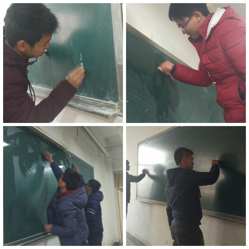 为呼吁大家更好地维护护上课坏境,提高同学们的上课效率,让老师能有一个更加舒适的教学环境。2月28日下午,能源学院13级党支部全体成员发挥先锋模范作用,组织开展了清理学院黑板活动。