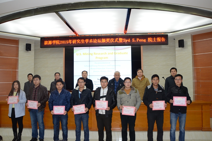 11月12日下午,能源学院2015年研究生学术论坛颁奖典礼暨彭赐灯院士学术报告会在该院学术报告厅隆重举行。美国工程院院士、我校特聘教授彭赐灯出席活动并作学术报告,该院负责人、部分教师及全体研究生参加了本次活动。活动由该院副院长杨玉中主持。