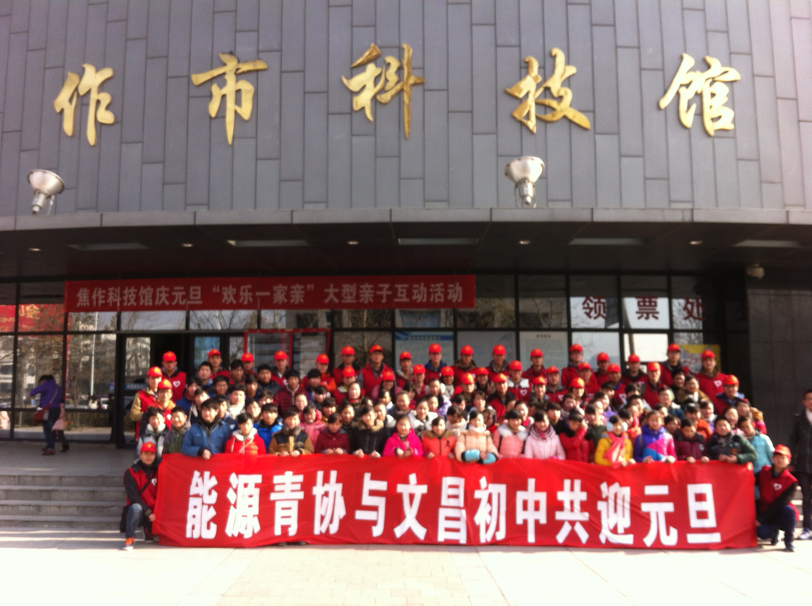 12月28日,由能源学院团委主办、学院青协承办的“能源学院与文昌初中学生共迎元旦”活动顺利开展。能源学院青协45名志愿者带领文昌中学75名学生到我校和焦作科技馆参观,度过了有意义的一天。