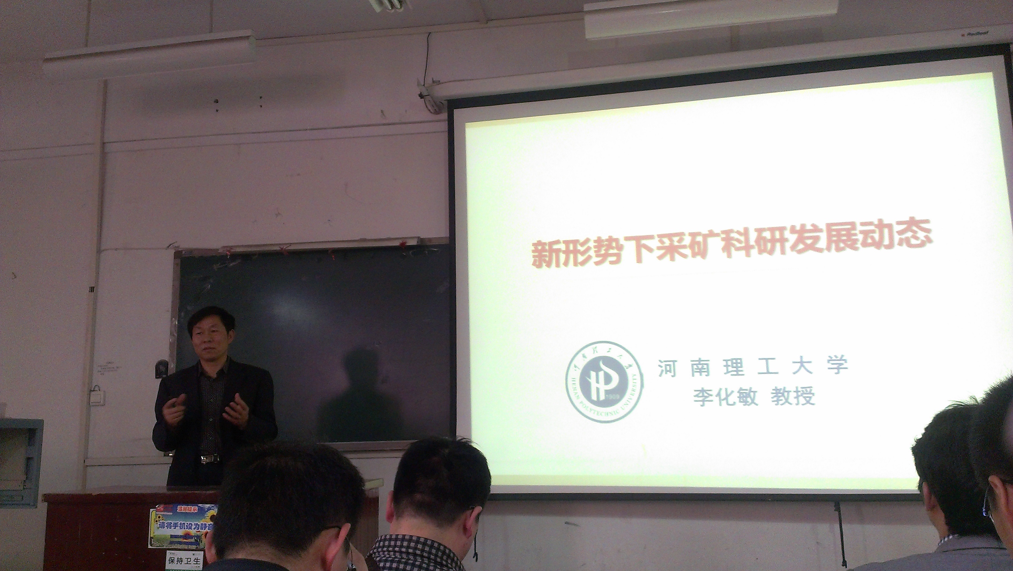 2014年4月17日,能源科学与工程学院研究生系列学术讲座(第一期)在能源学院202教室如期举行,我校能源学院李化敏教授受邀作了题为“新形势下采矿科研发展动态”的专题讲座。能源学院100余名博士、硕士研究生和部分教师参加。
