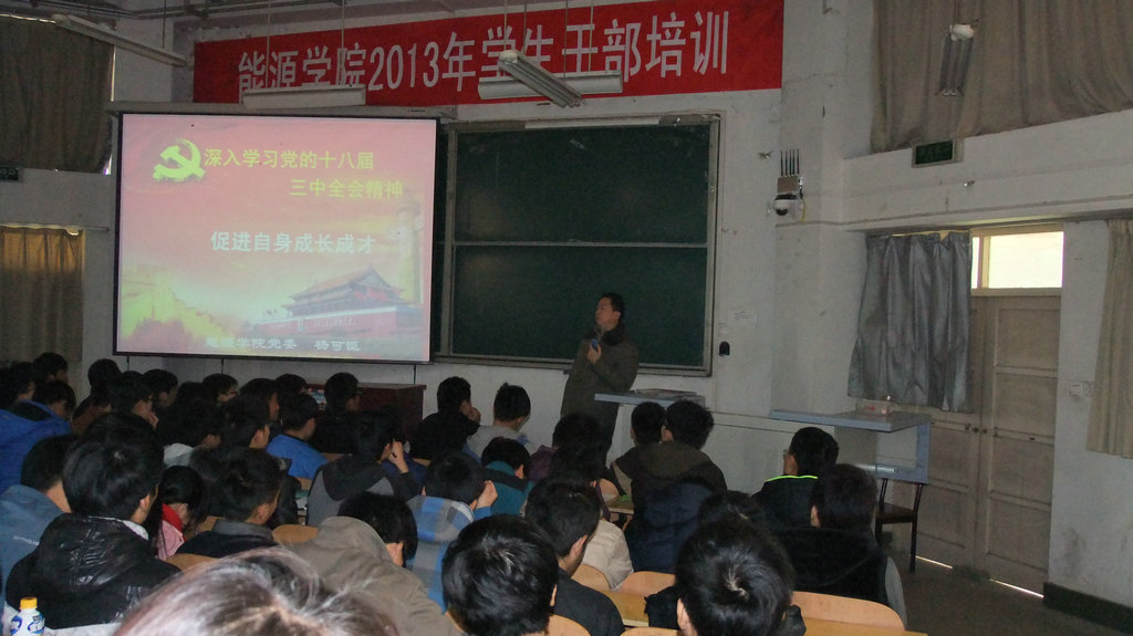 为了提高学生干部的综合素质,发挥好基层学生干部在学生工作中的重要作用,提升学生干部队伍的凝聚力、战斗力,12月初以来,学院举行2013年学生干部培训系列活动,能源学院党委副书记杨可臣及相关老师应邀举行专题讲座,学院2012级、2013级班干部以及学院各社团负责人共同参加了此次培训活动。