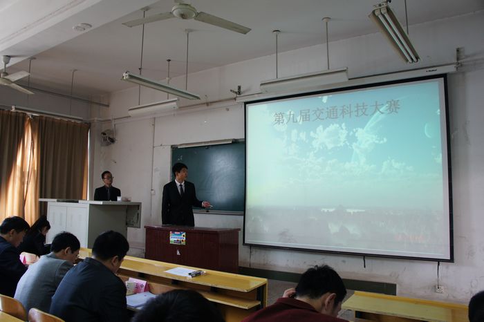 3月22日上午,第九届全国大学生交通科技大赛分赛在我校能源学院102教室成功举办。本次大赛由能源学院副院长杨玉中担任组长,校内十余位老师组成评委组,对入围的12件参赛作品进行评审。