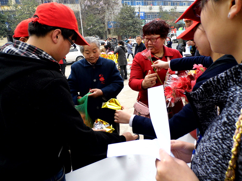 志愿者手里的菊花越来越少,收到的祝福越来越多,不少市民主动与同学们合影。志愿者们看到自己的努力有了回报,脸上也绽放出如金菊般灿烂的笑容。在志愿者们的努力宣传下,以鲜花代替冥币的祭祀方式将会慢慢深入人心,促进形成低碳环保的祭祀氛围,为实现中华民族伟大复兴的“中国梦”添砖加瓦。