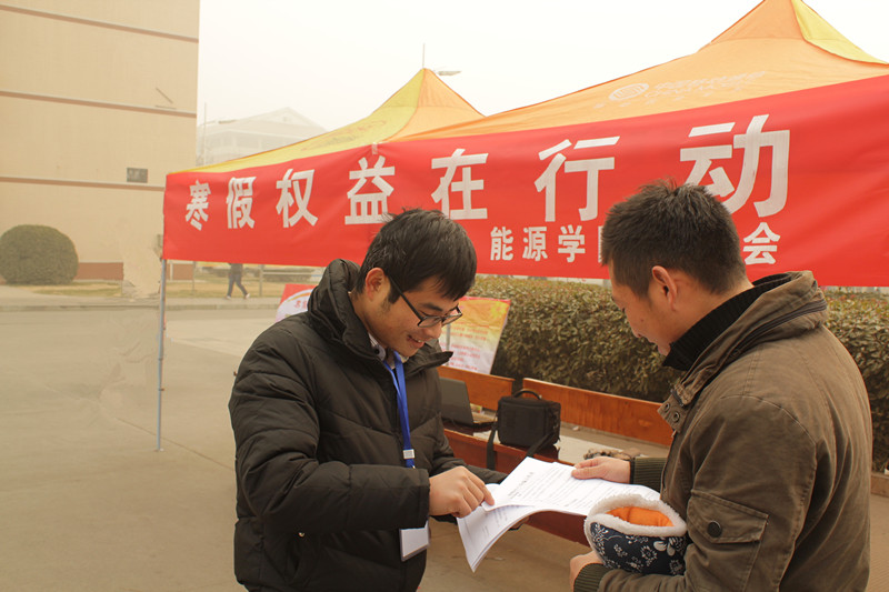 据悉,本次活动能源学院采取“两步走”的方式开展活动。第一步,学院积极组织该院学生分成若干小分队,向我校广大学生发放寒假打工防骗宣传单,并借助宣传板、广播等宣传媒介向大家介绍寒假打工防骗技巧,其中“高薪做诱饵,骗取报名费”、“中介单位相勾结”、“骗学生加入传销组织”等问题较为突出。同时学院也在宣传场地设立安全讲座和法律咨询服务站,由以前寒假打过工的学生向大家讲述自己的打工经历,并就大家提出的关于劳动法、合同法等相关法律进行详细的解答,同时指导同学们如何采取正当途径维护自己的合法权益,对同学们进行基础法律知识的普及。第二步,开展法律知识问答,进一步强化同学们法律意识,号召广大学生参加“寒假权益在行动”签名活动,鼓励大家参加维权活动,同时带动身边的人,形成“学法律,树新风”的良好氛围。