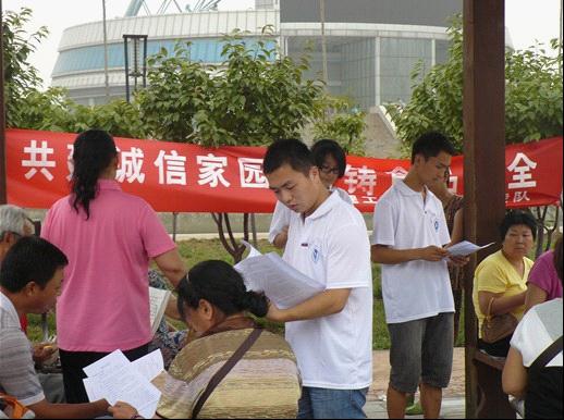 “民以食为天”,食品安全问题是关乎人民生命健康的头等大事,7月7日下午,我院“共建诚信家园 ,共铸食品安全”调研宣传队来到达龙源湖公园进行食品安全宣传活动。