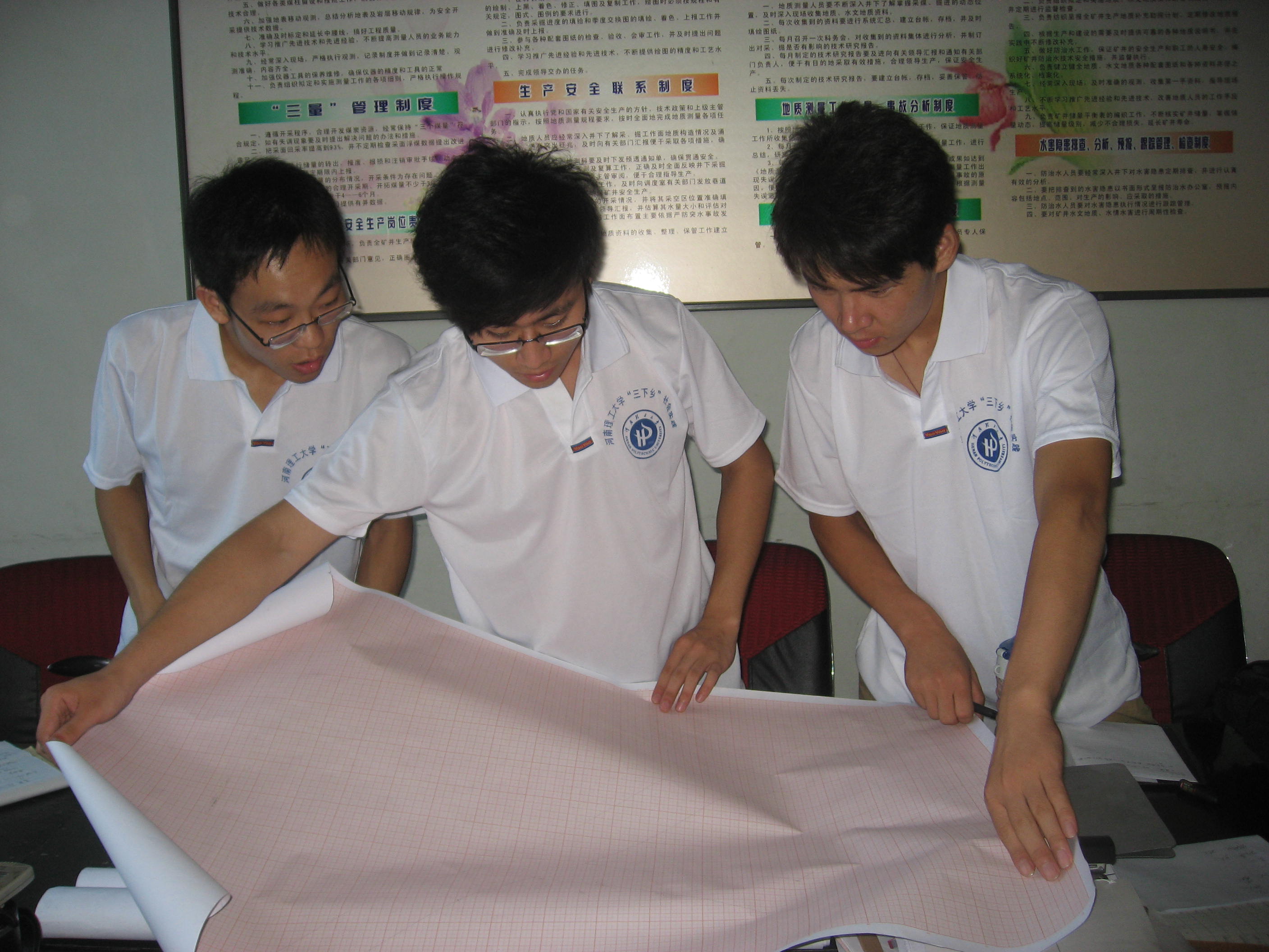 经过一路颠簸,能源梦想动力团队一行来到郑煤集团位于新密的矿区,团队人员受到矿区人员的热情招待。下午,同学们与接待员黄传波亲切交谈,了解了矿区总体概况,包括新密地区煤矿现状等。当谈到目前矿区发展所面临的困难时,总工办主任黄传波为矿区的人事状况感慨道;“新密矿区只有两个高级工程师、五个工程师等高等优势人才,剩余的主要是专科类毕业人才,就连本科人才都很少。其中刚刚毕业学生很难将在校所学的理论知识应用到实际生产工作当中,这也是矿区发展所面临的最大问题。”同学们认真的听取意见,并不断询问新密矿区在招聘人才是注重考察本科生的哪些方面的能力,调查我校毕业生及研究生在矿上的工作状况及生活状况。最后,黄传波指导他们查看矿井井巷分布图,进一步的了解矿区的生产环境,为后续实践作准备。