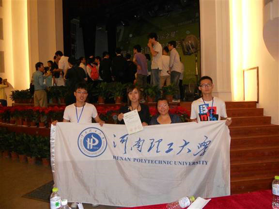 2012年5月25-27日,“交运之星”第七届全国大学生交通科技大赛决赛在东南大学举行。在河南理工大学能源学院副院长杨玉中和能源学院交通教研室主任李香红老师的带领下,经过与其他参赛高校团队激烈角逐,河南理工大学“御风”团队的作品《基于GPS/GSM的园区牵引导盲车的开发研究》最终获得三等奖的好成绩。该作品由河南理工大学路尧及谢贝贝两位老师指导,“御风”团队由苗雨欣、许文利、邓浩等5位同学组成。
