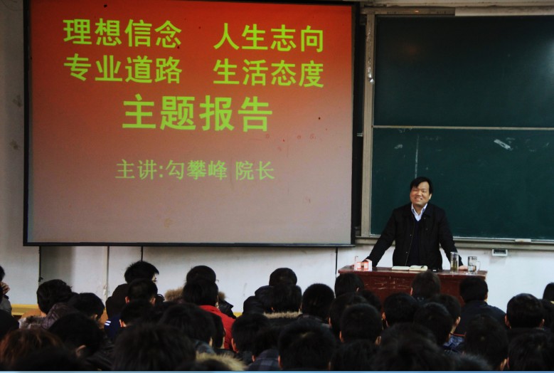 3月5日下午,在能源学院楼104会议室,勾攀峰院长在新学期伊始给11级采矿学生做了“理想信念、人生志向、专业道路、生活态度”主题报告。该院党委副书记浮新平出席以及各级辅导员参加了本次报告会。