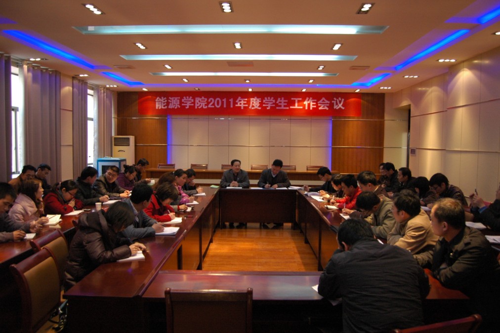 首先,浮新平传达了《能源学院2011年学生工作计划》。《计划》主要包括加强思想政治教育;扎实推进学风建设;加强党支部建设;培养学生健全人格和健康心理;扎实做好家庭经济困难学生资助工作,充分发挥资助工作的激励、导向作用;加强安全教育管理;举办科技创新活动和丰富多彩的校园文化活动;加强辅导员、班主任和学生干部队伍工作和建设高素质的学生工作队伍。这八个方面的内容,对2011年学院学生工作做了细致的工作安排。