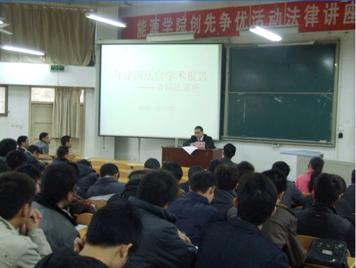 为扎实开展创先争优活动,切实丰富创先争优的活动形式,11月23日下午,能源学院邀请焦作市中级人民法院法官拜建国在能源学院楼104室做了一场有关合同法的学术报告。能源学院党委书记魏平儒、院长勾攀峰、党委副书记浮新平与该院数百名党员听取了本次报告会。报告会由魏平儒主持。