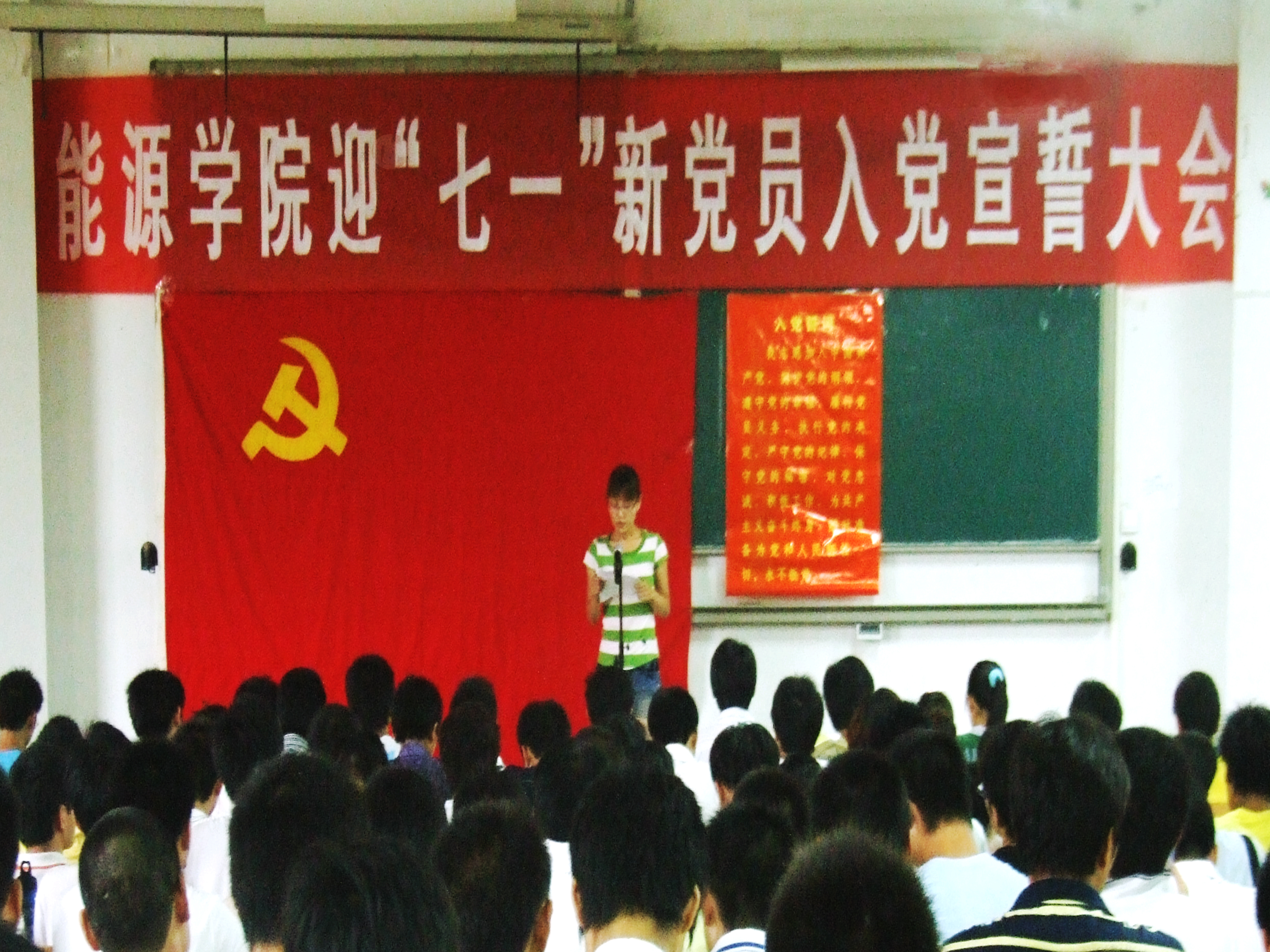 大会在庄严的国际歌中开始。能源学院06级辅导员王明中首先宣读了参加宣誓的新党员名单和领誓人、监誓人名单。接着,在院团委书记支光辉的领誓下,115名新党员面向鲜红的党旗,举起右拳,庄严宣誓。雄浑、激昂的旋律过后,能源学院党委书记魏平儒代表院党委对新党员表示祝贺并致以热烈欢迎。在讲话中,他希望新党员们在今后的工作、学习和生活中,以更高的标准要求自己,时刻牢记入党誓词,以更加出色的学习与工作成绩为党旗增辉。