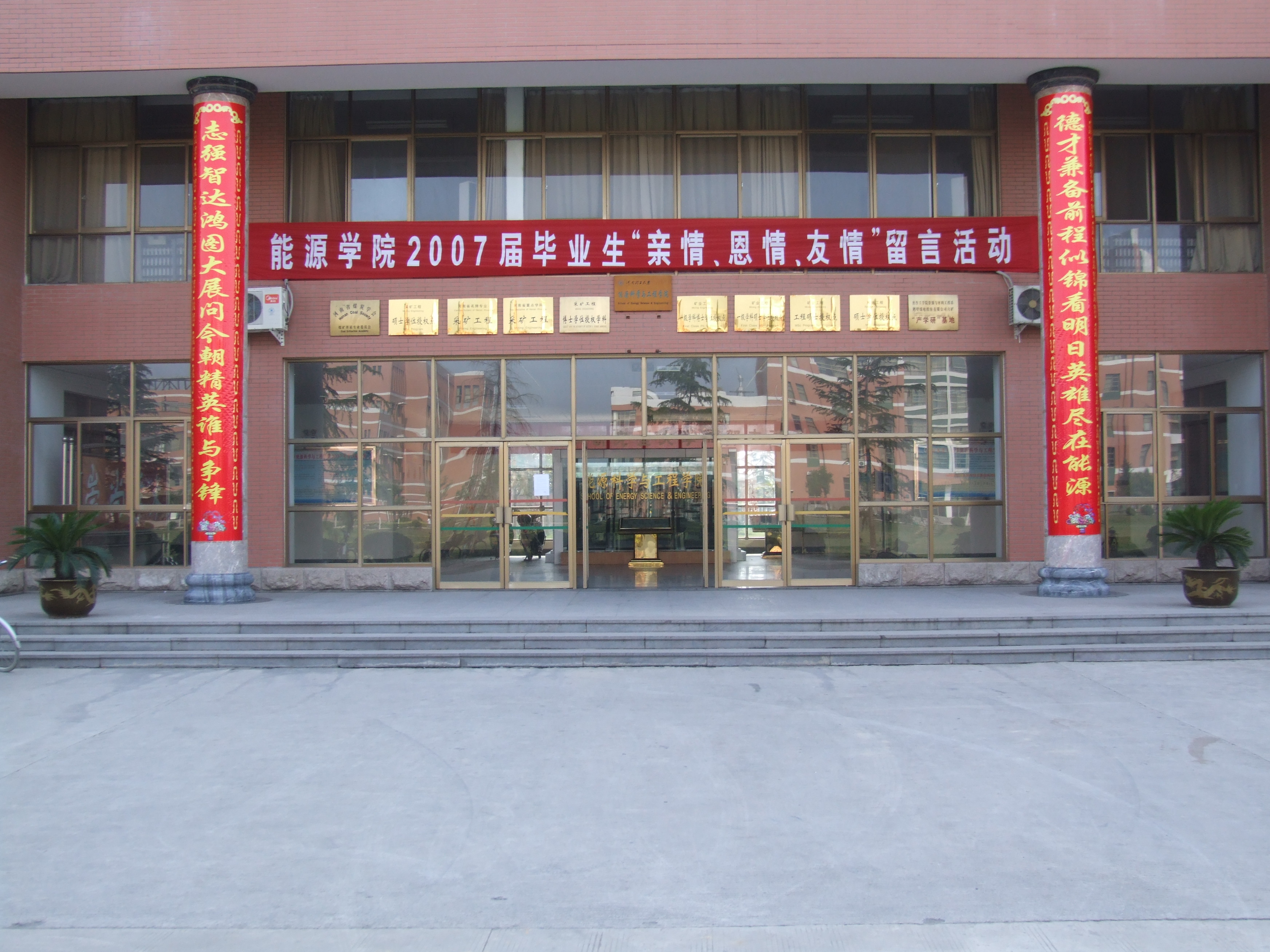 6月22日下午4点,能源学院办公楼前彩旗飘飘,“志强智达鸿图大展问今朝精英谁与争辉,德才兼备前程似锦看明日英雄尽在能源”为内容的巨幅对联在两个擎天柱上熠熠闪光。能源学院2007届毕业生留言活动拉开了帷幕。