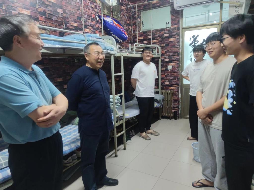 为深入了解学生学习生活和思想动态,加强宿舍安全教育和管理,缓解同学们的考试压力,5月23日下午,学院党委书记康全玉、院长郭文兵、院党委副书记阎俊豪及21级辅导员岳帅帅一同深入学生宿舍,走访看望学生,为同学们送去关怀和温暖。