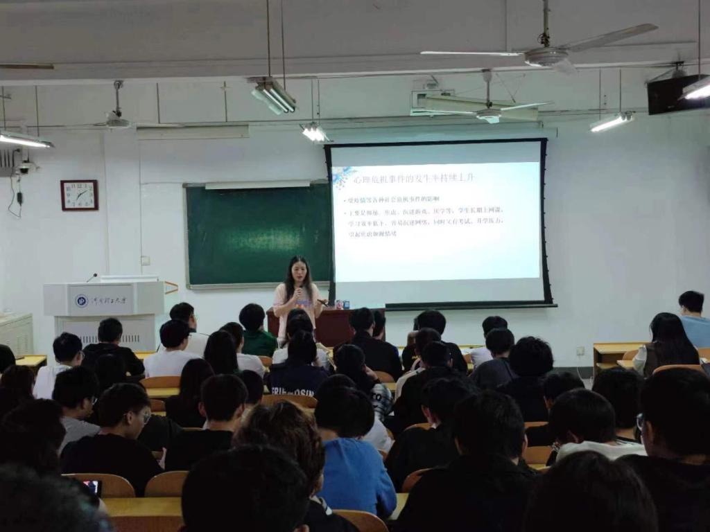 为进一步提升班级心理委员和宿舍信息员的心理危机识别、干预及助人能力,充分发挥学生骨干在大学生心理健康教育工作中的积极作用,6月4日晚,学生工作部心理老师封静于102教室召开主题为《校园心理危机的识别与自我关爱》的心理健康教育专题培训。学院全体心理委员与宿舍信息员参加此次专题培训。