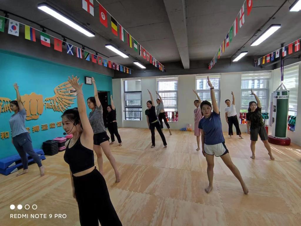 学院工会组织各位女教师走进“和·道馆”,让专业的教练带领老师们跳操。进入馆内,我们和着动感的节拍,跟着教练的指导,由浅入深,循序渐进。几套简单有效的动作做完后,老师们皆是大汗淋漓。纵使烈日炎炎,也依旧不能阻挡我们的运动热情。