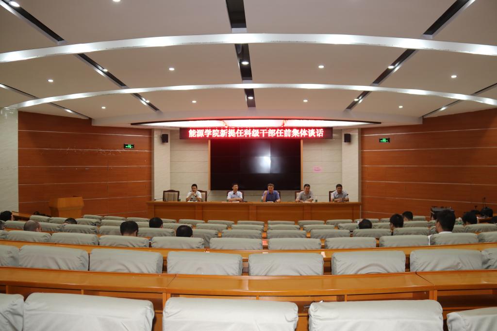 为推动学院改革发展和各项工作进展,9月19日下午,能源学院在104学术报告厅召开新提任系(中心)和平台负责人任前集体谈话。学院领导班子、各系、实验中心、教学平台、科研平台负责人,各党支部委员会全体成员参加了会议,会议由院长郭文兵主持。