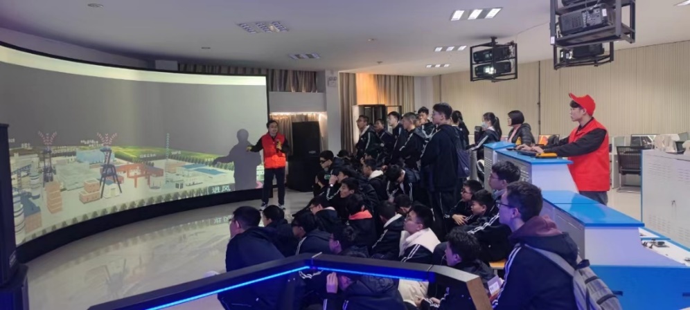 在学院一楼大厅,同学们首先被大厅中央的巨型煤块所吸引,张盛教授从煤炭的成因、成分、储量及开采利用等方面做了详细讲解。随后同学们分批走进了现代化矿井综合模型室、综采综掘实训室及三维虚拟仿真实验室,近距离参观了现代化矿井模型及采煤装备。参观过程中,实验中心老师生动形象地讲解了煤炭开采技术变革与发展历程、煤矿生产系统、现代化煤炭开采工艺、井下巷道掘进方式等内容,并对同学们提出的问题一一解答。在综采综掘实训室及三维虚拟仿真实验室,同学们还在实验老师的指导下纷纷体验综合机械化采煤、掘进、矿井提升等实训系统,通过亲手操作设备,感受了煤炭开采工作的艰辛和不易。