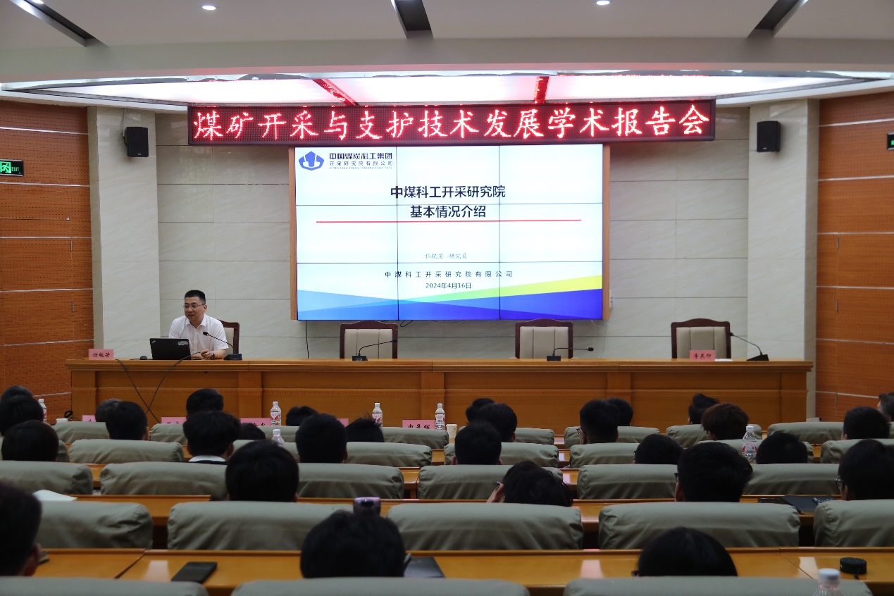 当日下午,开采研究院的专家们在学院104学术报告厅举办了煤矿开采新技术与发展学术报告会,分别作了《中煤科工开采研究院基本情况介绍》《煤矿绿色低损害开采技术》《煤矿巷道围岩控制新技术》《煤矿安全高效回采工艺装备与岩层控制技术新进展》《煤矿智能化关键技术与装备新进展》《煤巷智能化快速成巷技术与装备》6个学术报告。本次系列学术报告深入浅出、内容丰富、精彩纷呈,吸引了在场师生的强烈兴趣和热烈反响,拓宽了教师们的教学和科研思路,激发了同学们的学习热情,受到师生们的一致好评。
