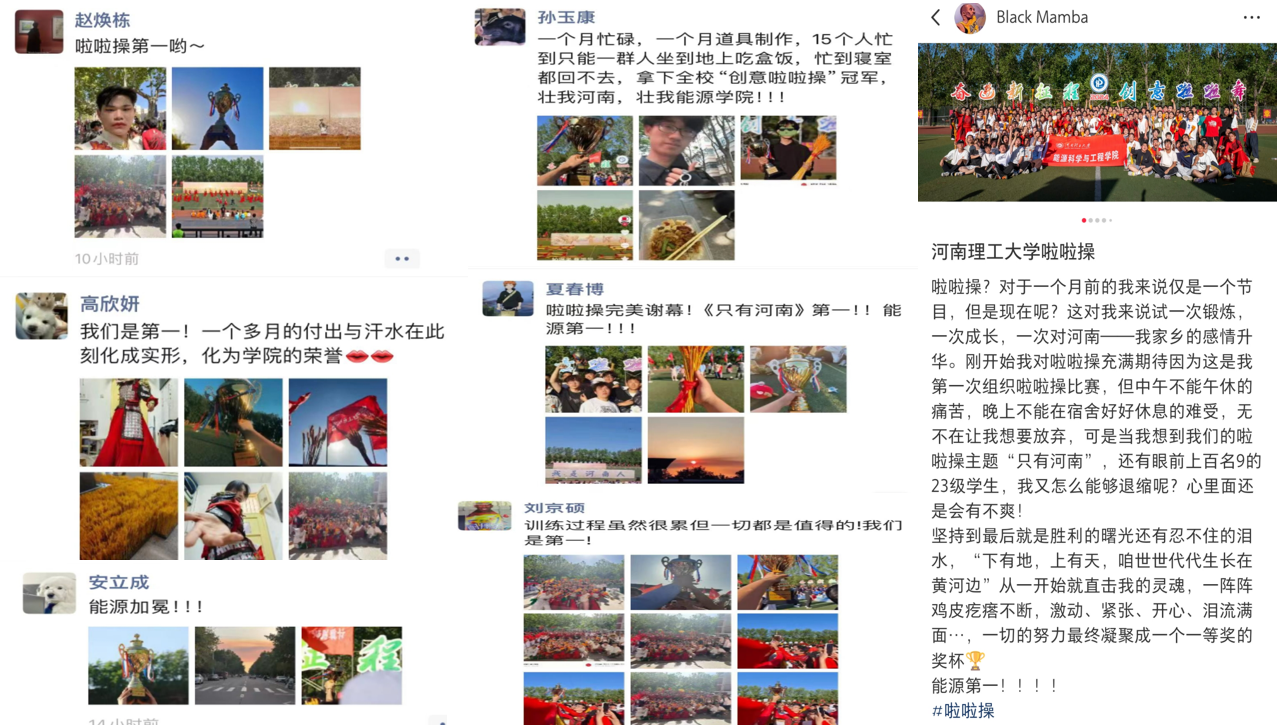 4月23日,河南理工大学第十届主题创意啦啦舞大赛在西区体育场举办,学院凭借选报节目《只有河南》的出色表现,在众多参赛学院中脱颖而出,荣获冠军。