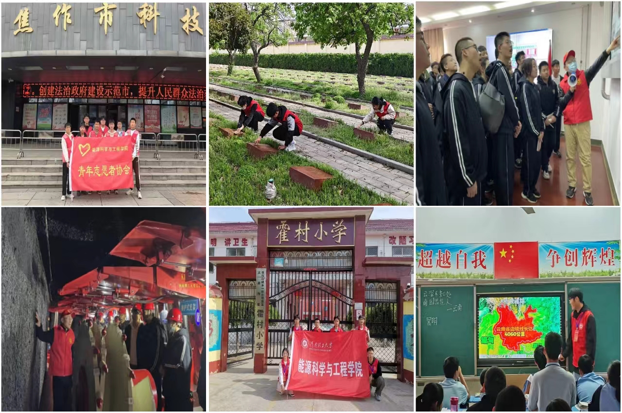 “服务有我”,青春微光成炬。学院实验中心老师邀请焦作市一中100余名师生走进该院实验室,带领他们近距离参观现代化矿井模型及采煤设备,激发了同学们对科学的热爱和对未来的信心;在焦作市科技馆开展的“科技强国,志愿有我”活动中,组织小学生们体验“活字印刷术”、VR虚拟现实技术等,让科学的火种在少年的心中燃烧;“情暖图书馆,服务沁人心”,在焦作市图书馆帮助读者借还图书、协助使用自助借还机,以实际行动增强服务意识;支教活动一直是我院的特色话动,青年活动月中,彩虹筑梦支教队在为结对小学和初中进行常规支教活动的同时,前往焦作市福利院,设计丰富多彩的教学内容,体现了青年对社会弱势群体的关爱与帮扶。
