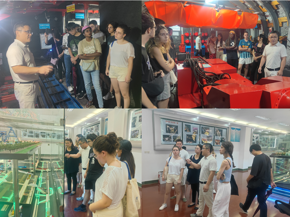 河南省煤矿岩层控制国际联合实验室执行主任魏世明首先对来自世界各国大学生们的到来表示热烈欢迎,随后带领大家来到了综采综掘实训室,详细介绍了现代煤矿巷道的掘进、支护方式,工作面的割煤、运煤工艺及顶板支护过程等内容,并由刘俊领老师现场操作掘进机与采煤机,进行了实操演示。在现代化矿井模型室,魏世明向大家讲解了煤矿井下的采煤、掘进、运输和通风等煤矿的主要生产系统,使他们对矿井全貌有了全面深入的了解。参观中,国际大学生惊叹我国现代化采煤技术与装备的先进性,部分学生对煤炭开采方法、巷道施工技术等内容产生了浓厚兴趣,在模型设备前纷纷驻足提问,魏世明都分别进行了详细解答。