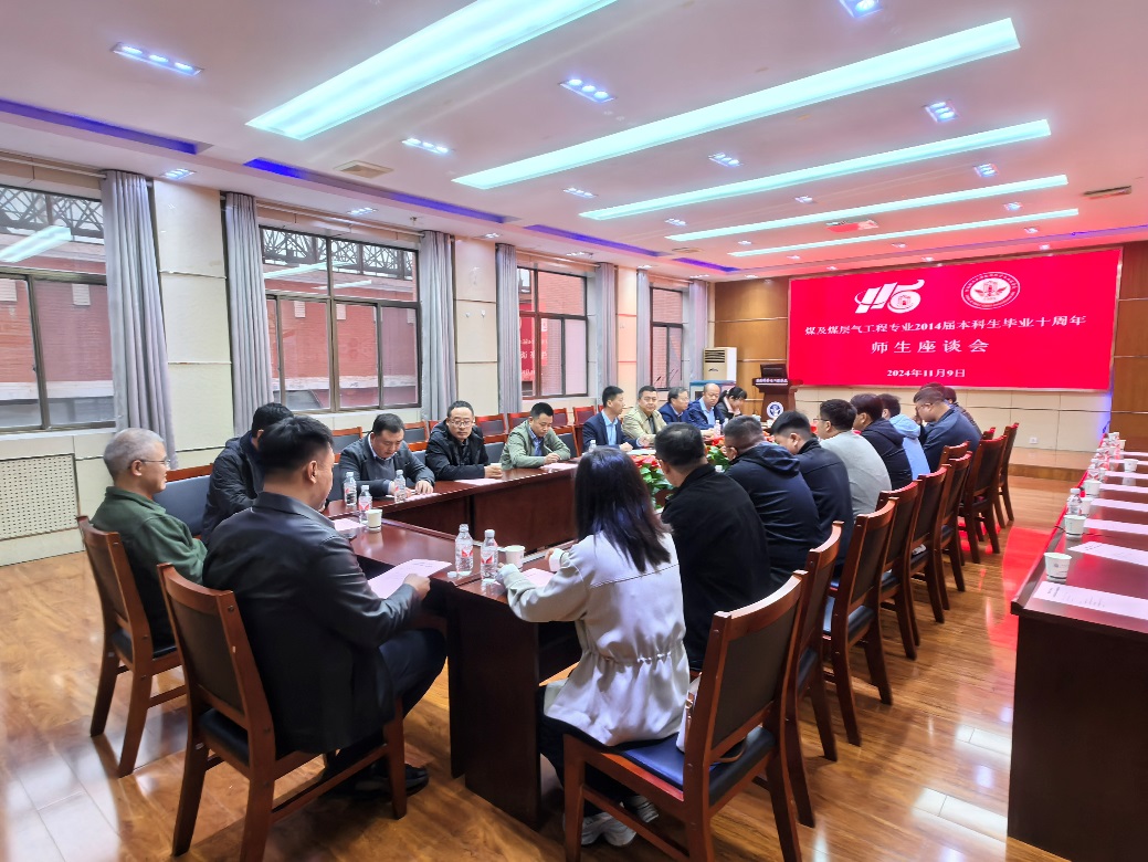 十载初心依旧,携手砥砺前行。11月9日,来自全国各地的煤及煤层气工程专业2014届校友重返母校,在学院201会议室举行座谈会,共同庆祝毕业十周年。学院在校院领导,时任辅导员、班主任和任课教师代表参加座谈,座谈会由新能科系党支部书记韩颖主持。