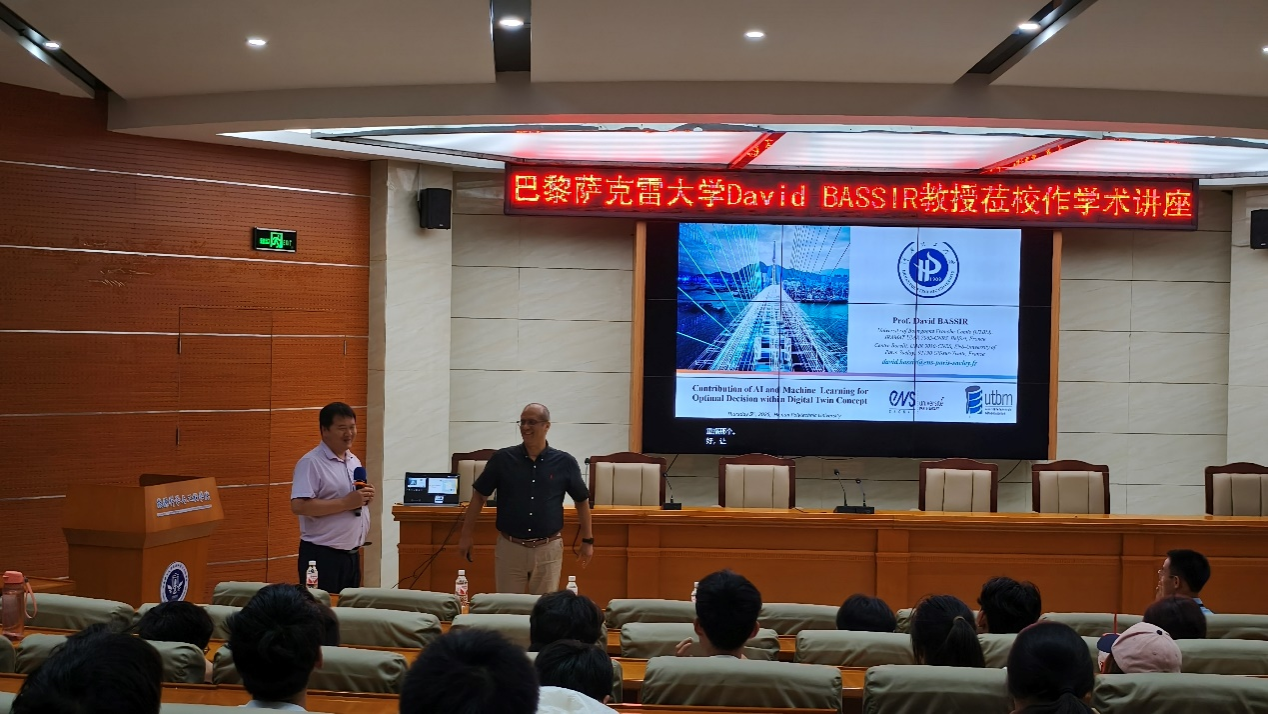 6月5日,应学院邀请,巴黎萨克雷大学David Bassir教授在104报告厅作题为“Contribution of AI and Machine Learning for Optimal Decision within Digital Twin Concept”的学术报告,报告会由交通系郭保华教授主持,100余名师生踊跃到场听取了报告会。