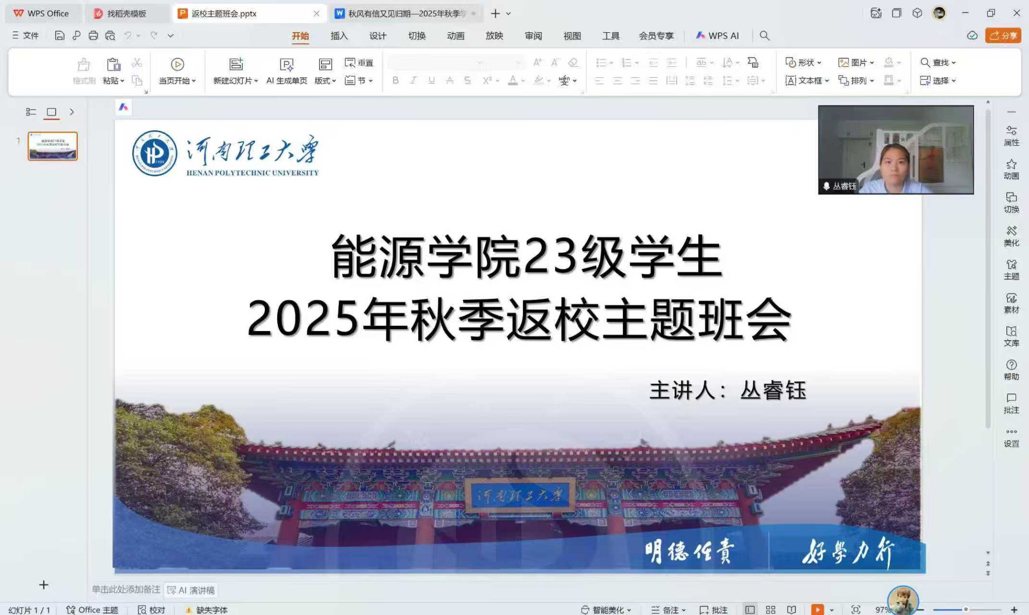 本次返校主题班会以“严守要求抓落实、安全筑基护返校”为核心,各位辅导员通过屏幕共享逐条解读《2025年秋季学期学生返校温馨提示》,重点强调返校报到时间及相关注意事项,提醒因特殊原因暂缓报到的学生须提前履行请假手续。并且聚焦交通出行、财产保护、宿舍消防及水域安全“四重防线”,强化“不轻信、不转账、不留宿”安全准则,帮助学生筑牢返校“安全线”。