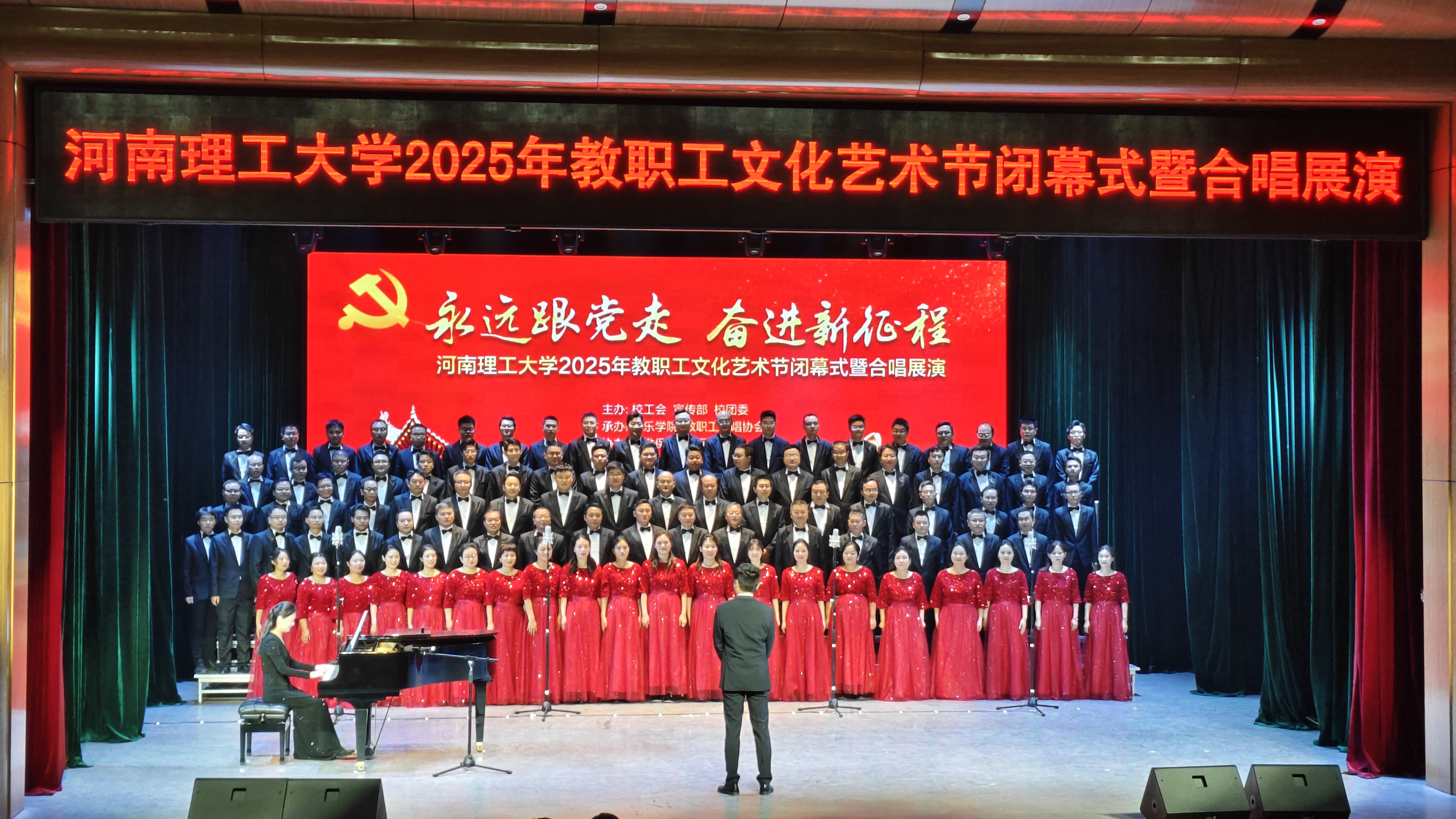 11月4日,河南理工大学小礼堂内歌声嘹亮、气氛热烈,“永远跟党走 奋进新征程”教职工合唱展演活动圆满落幕。能源学院教工合唱团凭借精湛的演唱技艺、饱满的精神风貌和深深的情感表达,从众多参赛队伍中脱颖而出,荣获本次展演一等奖,用歌声献礼中华全国总工会、河南省总工会成立100周年,纪念中国人民抗日战争胜利80周年,向伟大祖国的辉煌成就致敬。