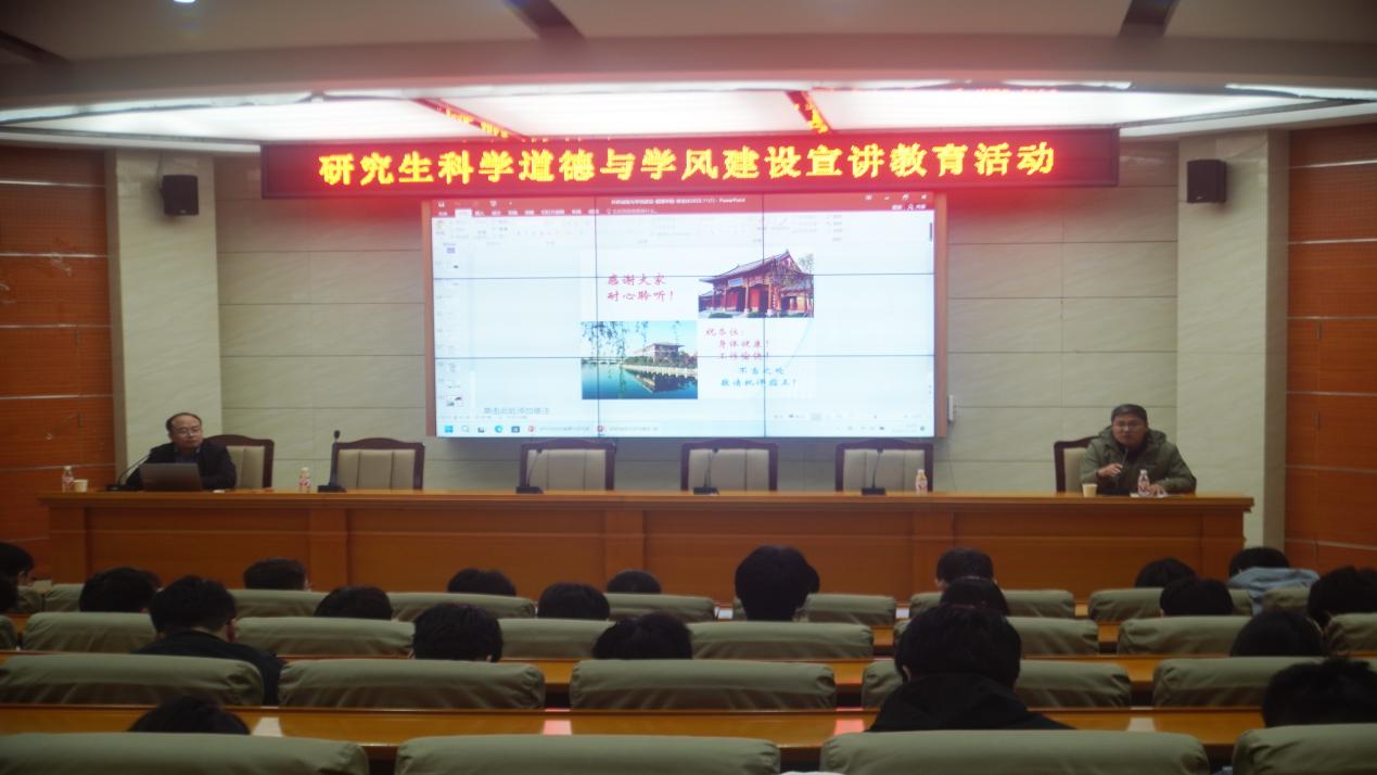 11月25日,我院特邀校学术委员会秘书处主任、科技处副处长张宝庆教授在学院104学术报告厅作《科研诚信与学风建设》专题报告。会议由学院副院长刘少伟主持,近130名研究生参加。