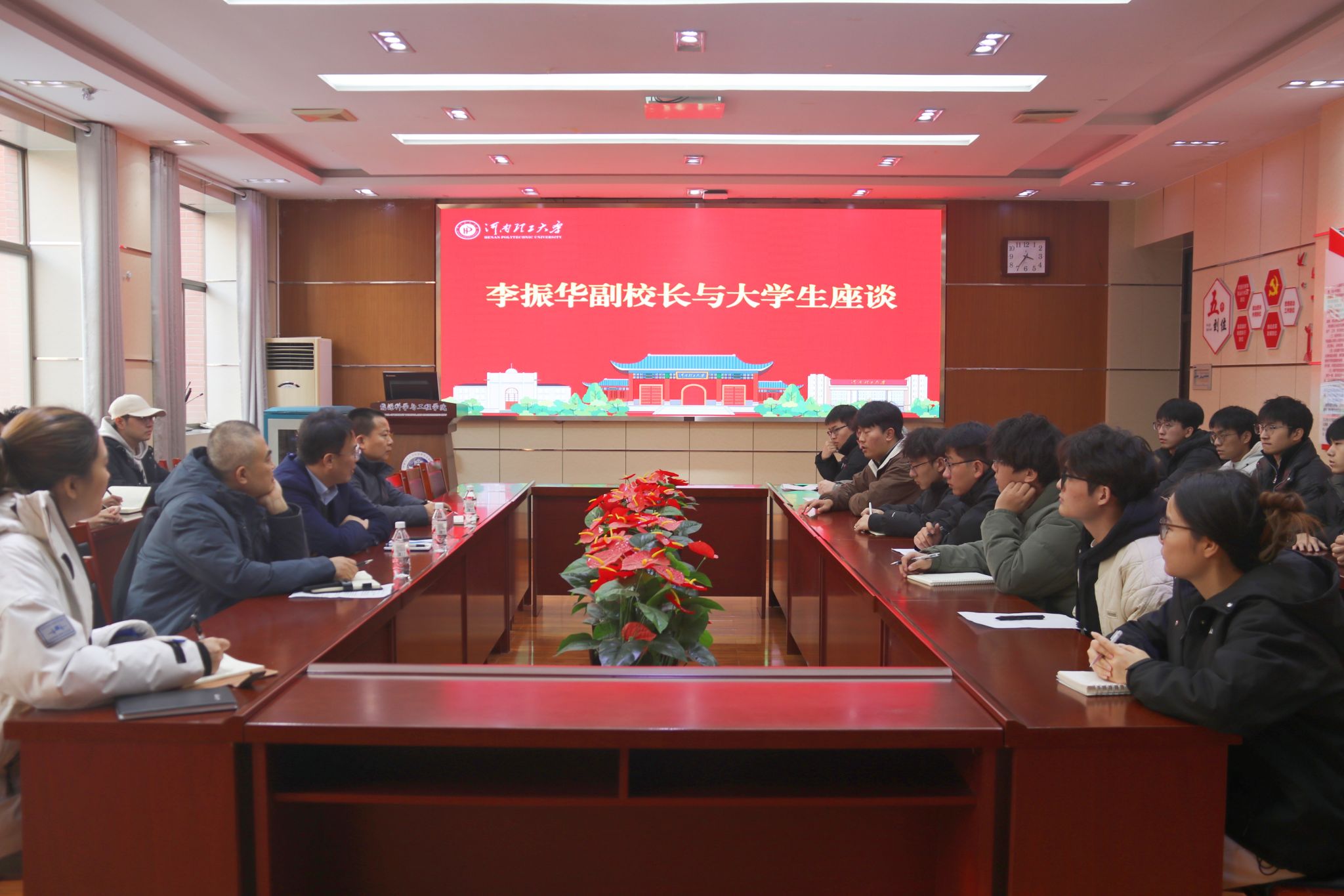 座谈会上,学生代表踊跃提问,围绕大三阶段学业与就业困惑展开交流,重点询问“专业课与学习压力平衡”“考研与就业抉择”“专业就业前景”等问题。李振华副校长结合个人阅历逐一细致解答。他强调,学生应着力提升专业课自学能力,科学分配时间精力以应对学业压力;考研需秉持理性规划态度,避免盲目“内卷”;就业与考研并无优劣之分,关键在于契合自身发展需求。他以新疆有色等企业为例,肯定了基层岗位的成长潜力,勉励学生脚踏实地积累实践经验。座谈会最后,他向在座的同学们提出三点殷切期望:一是结合行业趋势与个人特质明确发展方向,拒绝盲目跟风;二是筑牢专业基础、提升综合素养,在学思践悟中积累过硬本领;三是树立与国家能源战略同频的价值观、立足行业的世界观、脚踏实地的人生观,在基层与新兴领域实现人生价值。