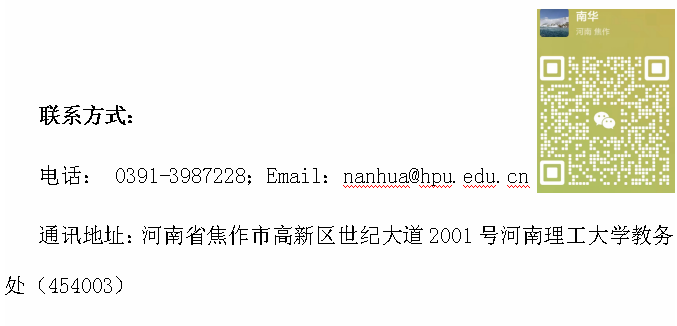 个人简介:南华,男,汉族,1976年生,河南濮阳人,博士、教授、博士生导师,省文明教师,美国西佛吉尼亚大学访问学者。现任河南理工大学教务处副处长,兼任中国煤炭学会矿山系统工程专业委员会委员、省安全生产专家、省青年科技专家、哈密市煤矿安全生产专家、《煤矿安全》青年专家委员会委员等。曾任省煤矿岩层控制国际联合实验室常务副主任、采矿工程系主任。