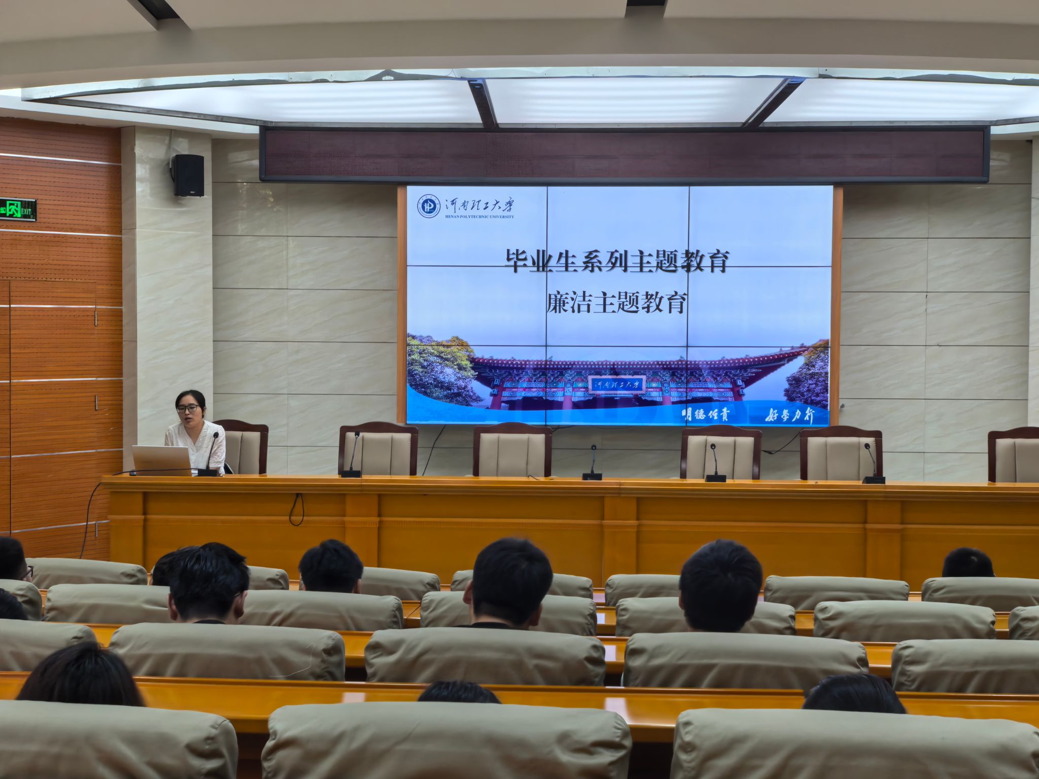 为深入贯彻落实学校关于做好2025届毕业生工作的部署要求,厚植毕业生家国情怀、安全责任意识和廉洁自律观念,营造积极向上、温馨和谐的毕业离校氛围,5月29日下午,学院于104学术会议厅组织开展毕业生系列主题教育活动。全体2025届毕业学生参加此次活动,活动由毕业生辅导员王甜主讲。
